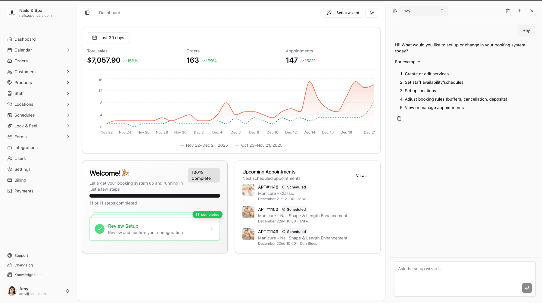 Full-featured REST API with comprehensive documentation. Manage bookings, customers, services, and more programmatically.